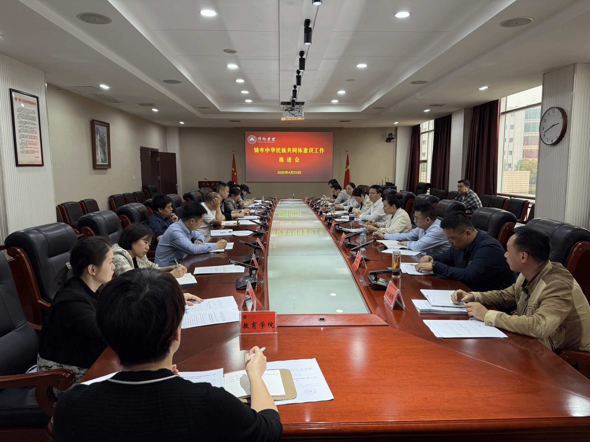 4月23日,我校在至善楼第一会议室召开铸牢中华民族共同体意识工作推进会,校党委委员、副校长陈永国出席会议,宣传部、招生就业处、学工处、保卫处、国际交流中心、团委等相关部门负责人及二级学院党委副书记参加会议,会议由党委委员、统战部部长、教务处处长贺晓梅主持。
