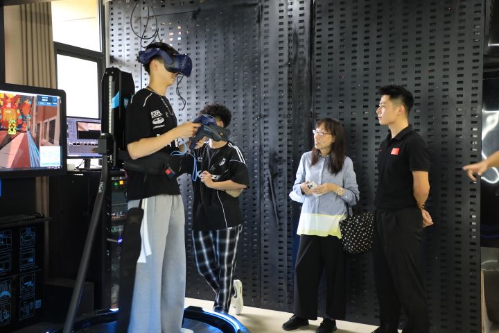 活动期间,交流团首站来到天泉楼,在萍乡学院党委委员、副校长陈永国,党委委员、统战部部长贺晓梅,国际教育与交流中心(港澳台事务办公室)主任郑照强,团委副书记熊云杰的陪同下,依次参观天泉楼一楼工程训练中心、三楼校史馆、四楼数字经济产业学院及十一楼虚拟仿真实训中心。各展区负责人员详细讲解教学设施功能、学校发展历程、数字经济学科建设及虚拟仿真教学应用等内容,台湾大学生们认真聆听、不时提问,对萍乡学院的办学特色与教学资源给予积极评价。