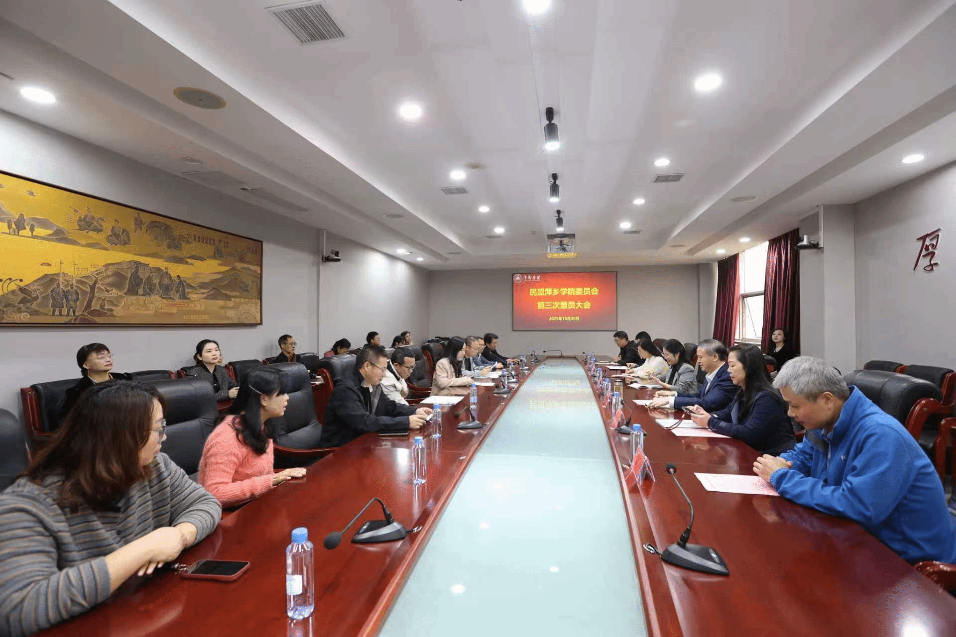 2025年10月30日上午10:10,民盟萍乡学院委员会换届大会在至善楼第二会议室顺利举行。江西省萍乡市人大常委会副主任、民盟萍乡市委会主委李敏、萍乡学院党委委员、副校长陈永国,萍乡学院党委委员、统战部部长贺晓梅、学校兄弟党派代表及全体盟员出席会议。